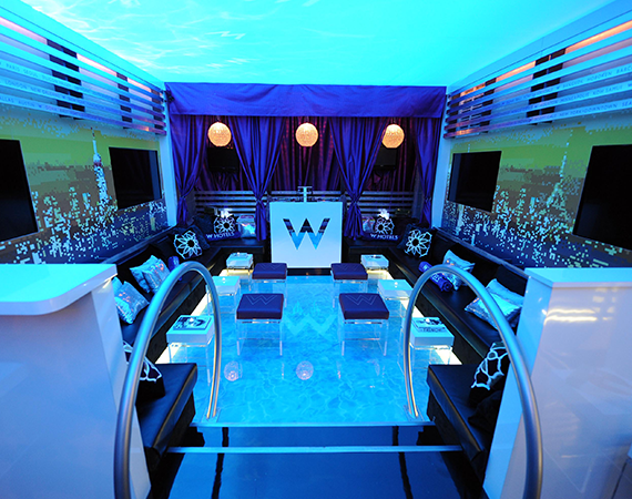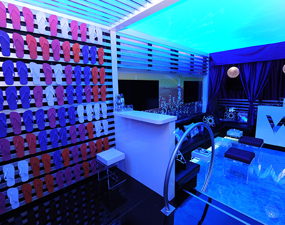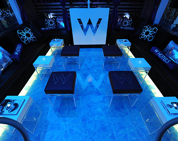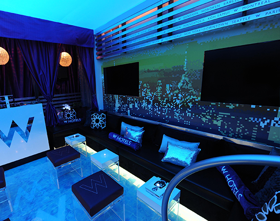 After months of design and preparation in exactly 24 hours the W Hotels VIP Lounge went from a blank empty tent to a vibrant lounge with music, bites, beverages,,a full audio and visual immersion and an electrifying celebration.