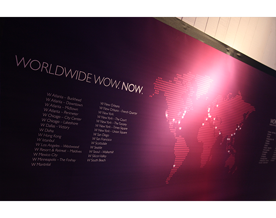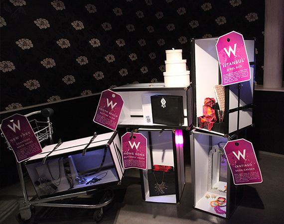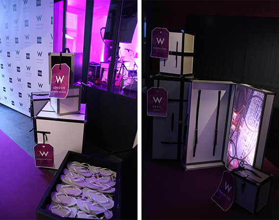 Both rooms were designed to mirror the W Hotel aesthetic celebrating "travel-glam" through the graphics, styling and suitcase vignettes.