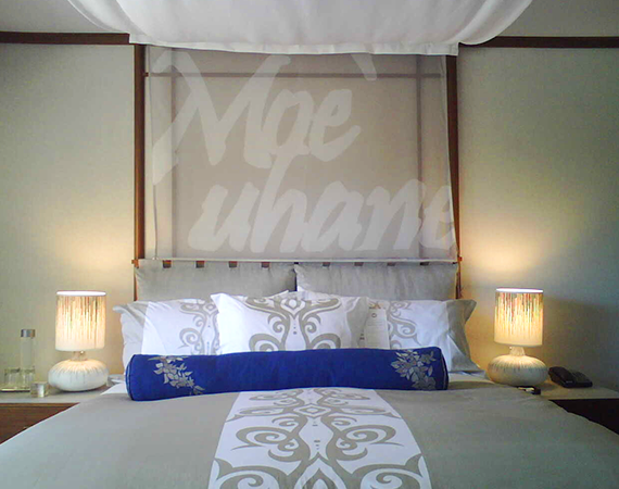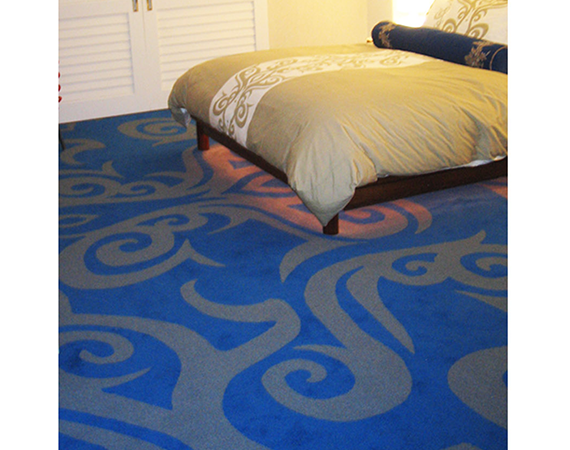 The hallway ceilings were inspired by sea foam, the bed by traditional elements on sailboats, the chair by fishing nets and the carpet by traditional tribal tattoo.