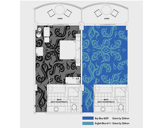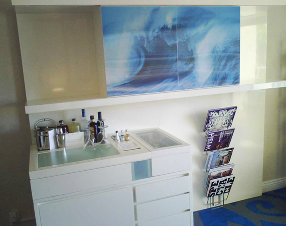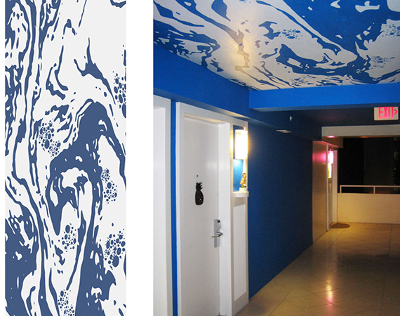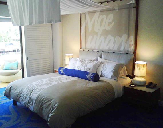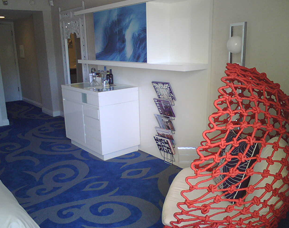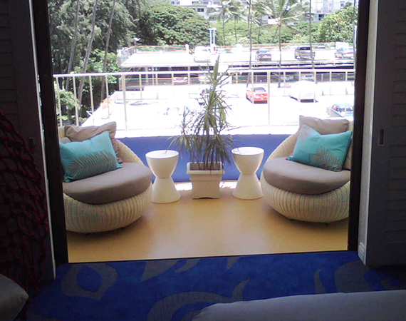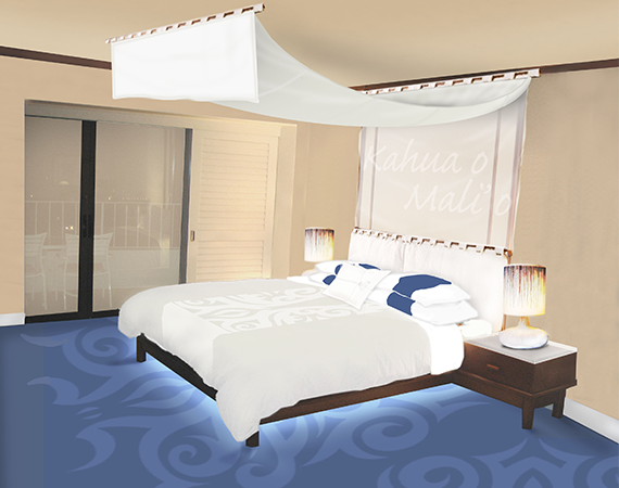 The design for the W Honolulu Model Room was inspired by traditional Hawaiian culture, the Hawaiian island's topography and the sea. Visual cues were taken from tiki statues, lava lamps, traditional Hawaiian tattoo art, sea foam and sailboats.