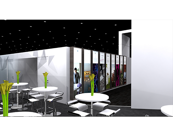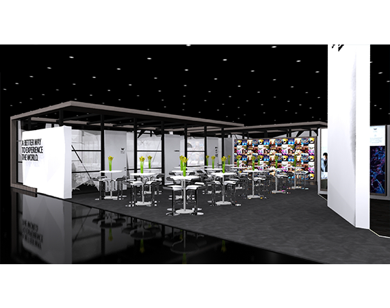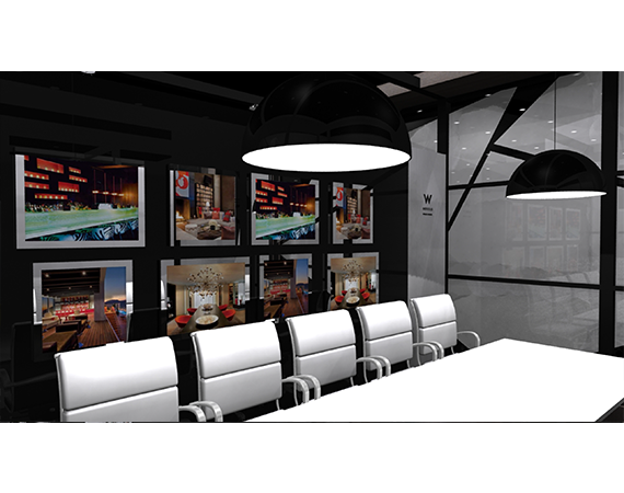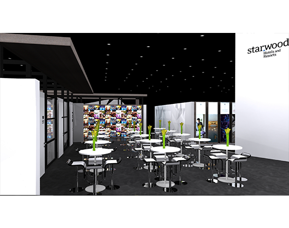 Similar to the ITB tradeshow booth the color palettes, the materials, furniture styling, graphic styles to even the spatial decor elements, were inspired and modeled after the Starwood Headquarters environmental design.