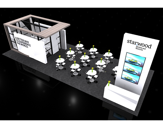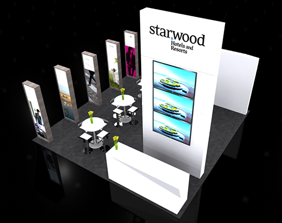 In 2012 Starwood took a look at it 10 year old aging tradeshow booth compared to its competitors and decided the time had come for a new booth. The Brand Design team was tasked with designing a new Starwood North America tradeshow booth that would present a consistent message and look for key Global Sales and Trade Shows.