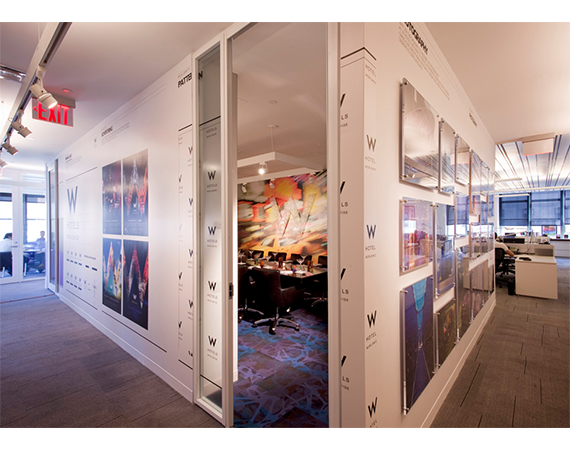 In 2011 Starwood opened a new New York City Design Center at the crossroads of Canal St. and Varick St. All of the Global Brand Design team's diciplines had a hand in this beautiful office space, showcasing some of its 3D best design management, 2D designs and project management to complete the space.