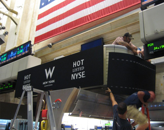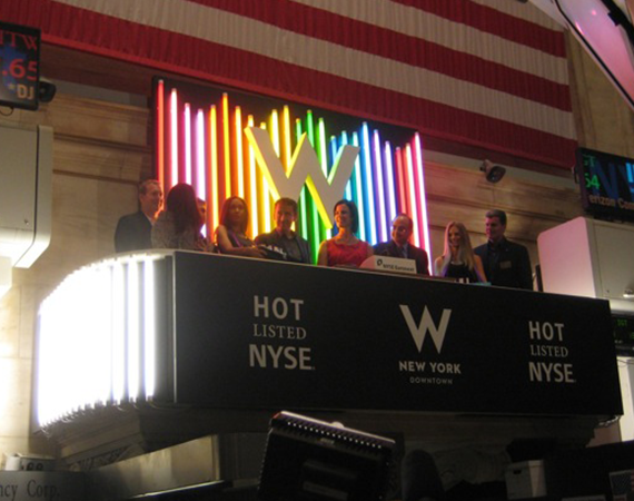 The Starwood Brand Design team transformsed the NYSE bell podium while Amanda Ross, W Hotels Global Fashion Director, designs custom trading jackets for NYSE traders. New designs were unveiled prior to the closing bell. To top off the event, W's Whatever/ Whenever talent provided room service and a surprise on the trading floor with afternoon delights.